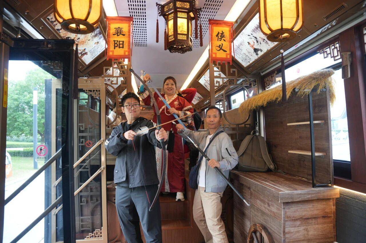 刚刚结束的国庆中秋假期,全国首辆“侠义主题”公交驶上襄阳街头,车厢内布置旌旗、花灯、大鼓等古风元素,营造出移动的“武侠江湖”,成为襄阳假日文旅的一张亮眼名片。即将上线的升级版,仍以《射雕英雄传》为主题,分别围绕“快意恩仇”与“儿女情长”展开设计。
