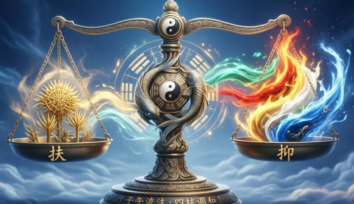 定好了格局之后,接下来就是最核心的操作:扶抑。说白了,就是天平原理。一般的操作是,拿日干跟财、官、印、食这些十神比强弱。日干太强了,像个壮汉没人管,那就得压一压,用官杀来管束,用食伤来泄秀;日干太弱了,像个病秧子扛不住事,那就得扶一把,用印来生,用比劫来帮。